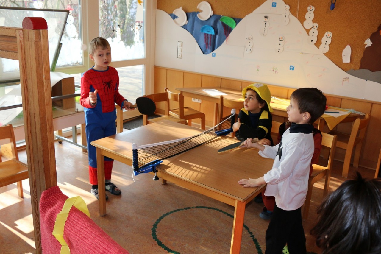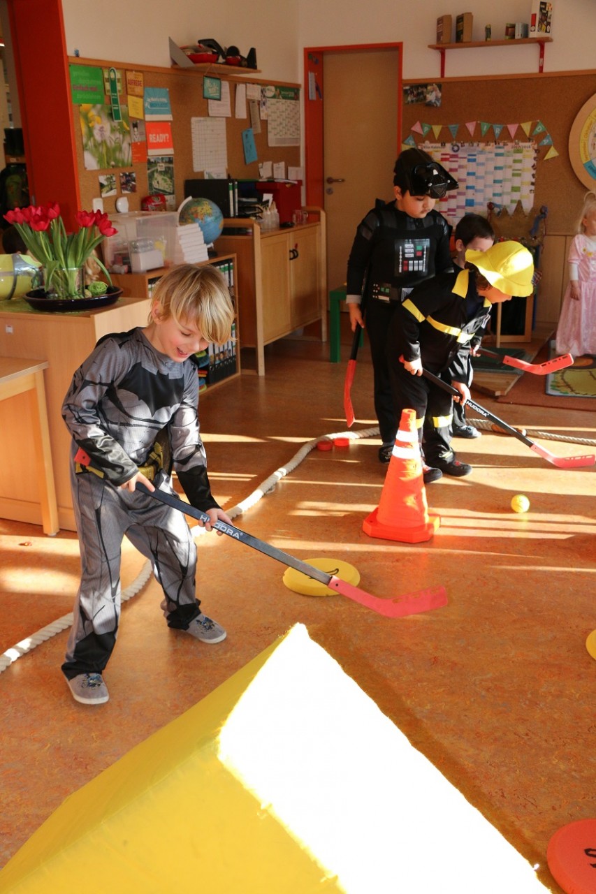 …starteten wir in ein sportliches Kindergartenjahr. In Süd-Korea haben zeitgleich die olympischen Winterspiele begonnen. Für uns war das auch ein Grund, Fasching ein bisschen sportlich zu gestalten. Im Bewegungsraum war eine Bewegungsbaustelle errichtet und Ballspielende konnten sich im Treffen üben.