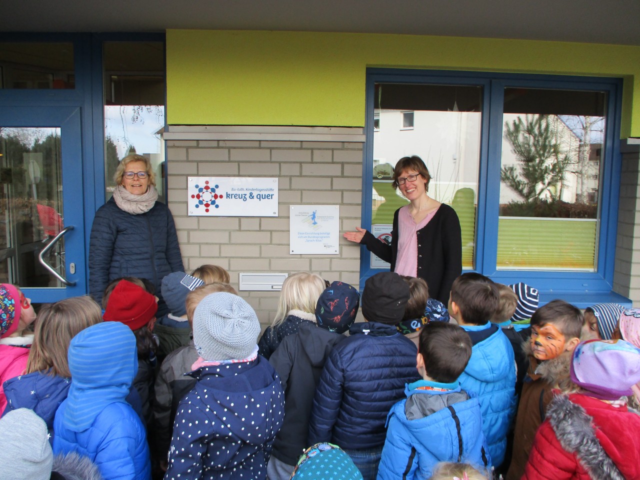 Alle Kindergartenkinder waren Zeugen, als das „Aushängeschild“ vor einigen Tagen am Hauseingang der Kita kreuz&quer in der Düsseldorfer Strasse angebracht wurde.