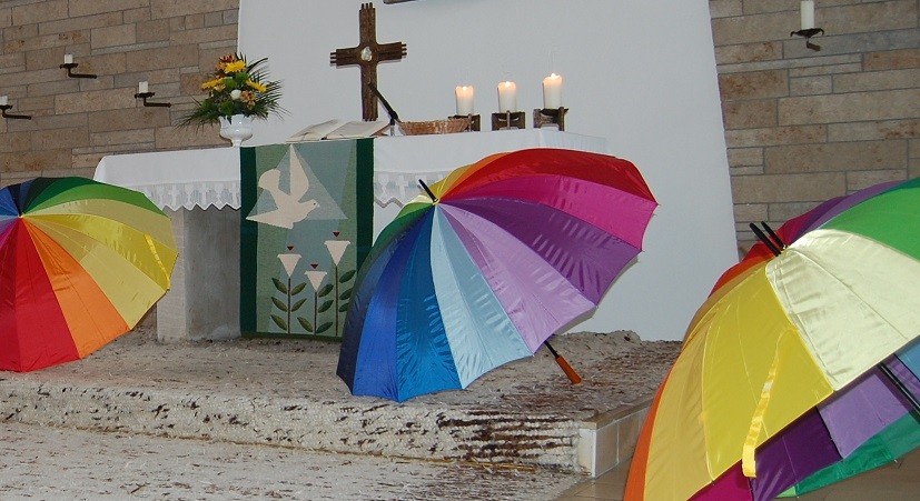 Immer wieder werden wir so im laufenden Kindergartenjahr an dieses Segnungsritual erinnert. Bunt in den Farben des Regenbogens, der sich auch über uns Menschen spannt, wie ein großer Schirm der uns alle behüten soll.